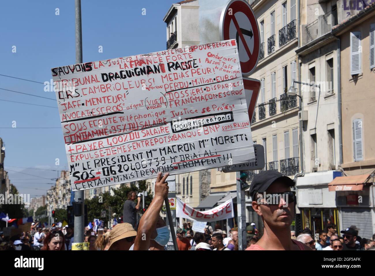 Marseille France 21st Aug 2021 A Protester Holds A Placard During The Demonstration Against The Health Pass Thousands Of People Demonstrated Against The Health Pass In Marseille French President Emmanuel Macron Announced Among