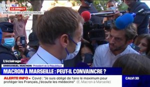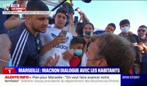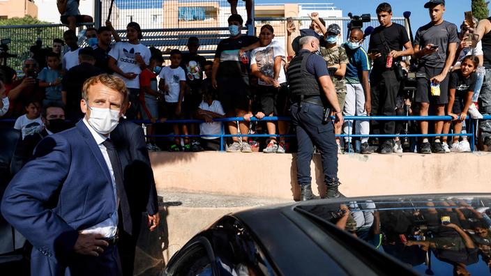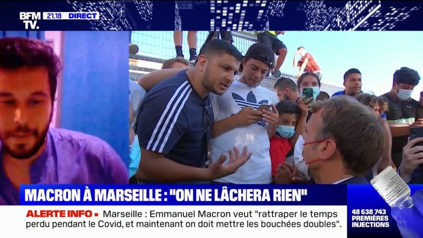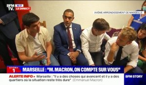 Emmanuel Macron est venu mercredi à la rencontre des habitants de la cité Bassens dans les quartiers nord de Marseille gangrénés par la violence et les trafics de stupéfiants. A Marseille Emmanuel Macron va détailler une réponse globale aux problèmes de la ville. La confiance reviendra avec lefficacité et les résultats pas avec un discours 017 Même quand on rase une ville il.