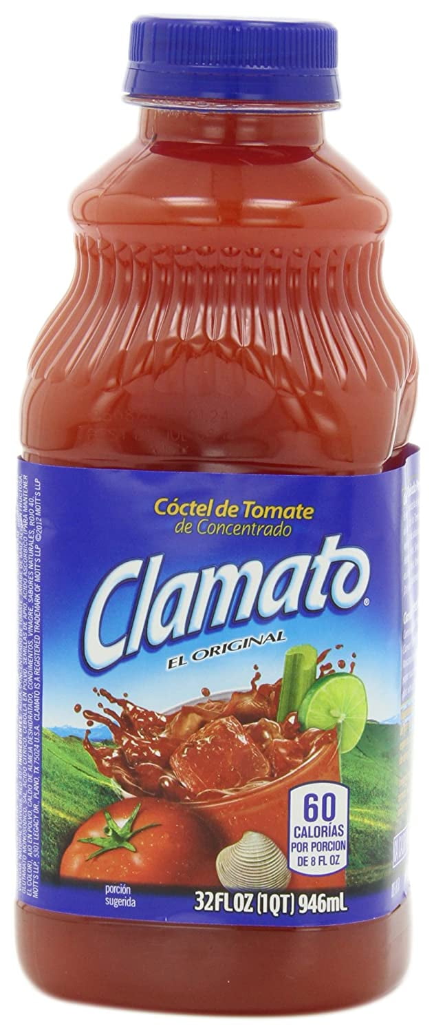 Available to ship arrives by Fri Oct 1 to Bentonville 72712. Clamato Original is the main ingredient in the Authentic Clamato Michelada. Clamato klˈmæto is a commercial drink made of reconstituted tomato juice concentrate and sugar which is flavored with spices dried clam broth and MSG.